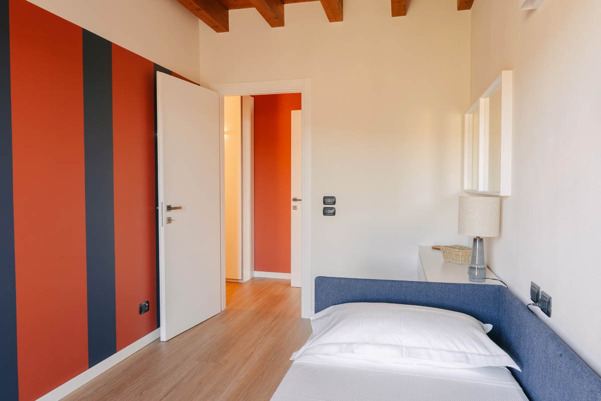 Das Herzstück dieser Wohnung ist den geräumigen Wohnbereich mit offener Küche: eine gesellige Umgebung, in der man sich entspannen kann, mit Freunden kochen kann oder einfach das Licht genießen kann, das durch die großen Fenster einfällt. Die beiden Schlafzimmer - ein Doppel- und ein Einzelzimmer - bieten Ruhe und Privatsphäre, ideal für Paare und kleine Familien.